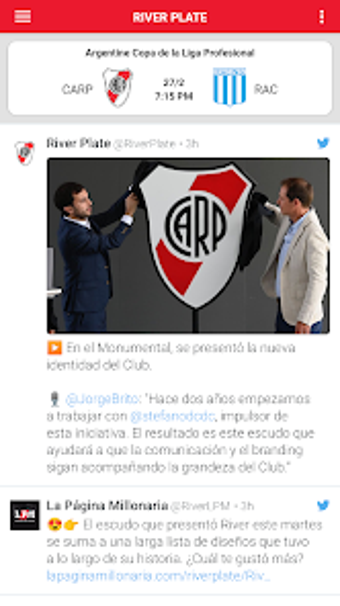 River Plate is een gratis Android-applicatie die zich richt op fans van de voetbalclub River Plate. De app biedt actuele nieuwsberichten van de belangrijkste supportersmedia, waardoor gebruikers altijd op de hoogte zijn van het laatste nieuws rondom de club. Daarnaast beschikt de app over een bijgewerkt wedstrijdschema, zodat fans geen enkele wedstrijd hoeven te missen. De gebruiksvriendelijke interface maakt het eenvoudig om snel toegang te krijgen tot informatie.